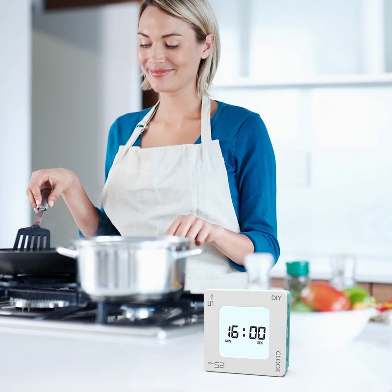 - Easy to use: four-sided flip screen switches to different modes. Simply shake to start or pause the timer, and the whole process eliminates your annoying setup time. When the alarm clock rings, gently shake the timer to automatically enter snooze mode, you no longer need to press the snooze button to open your sleepy eyes. The snooze time can be set from 5 to 60 minutes.