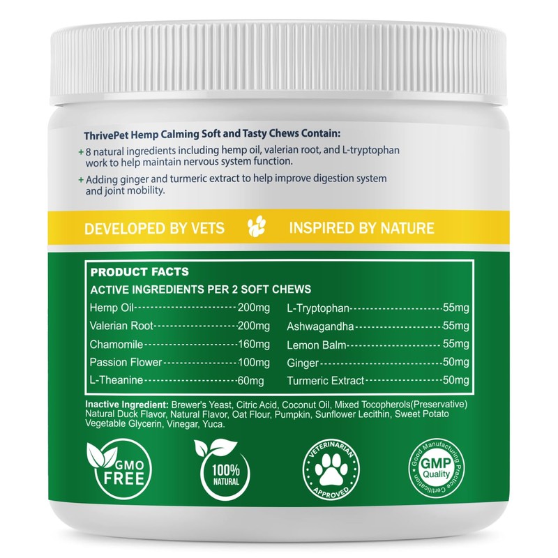 ThrivePet Hemp Calming Chews for Dogs - 98 Count | Duck Flavor - Dog Calming Supplement - Vet Approved