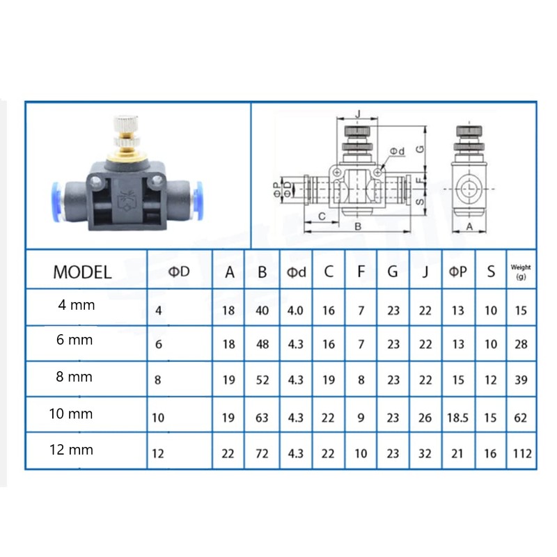 Throttle Check Valve 6 mm Push in Quick Connector Throttle Valve IQS Compress...
