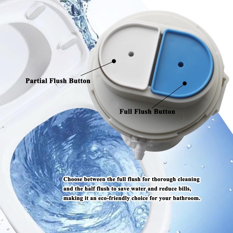 • Dual-flusher Valve Assembly: With two distinct modes—full flush and partial flush—experience superior water efficiency with our dual-flush valve kit, which allows you to choose between a full or half flush, helping you save water and reduce your bill!