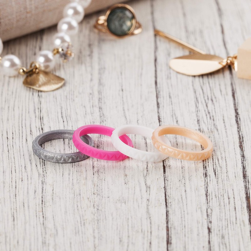 ThunderFit - Alianzas de boda de silicona fina para mujer, paquete de 4 alianzas de goma con diseño triangular de diamante, 2.8 mm de ancho y 2 mm de grosor 12.5 - 13 (22.2mm)