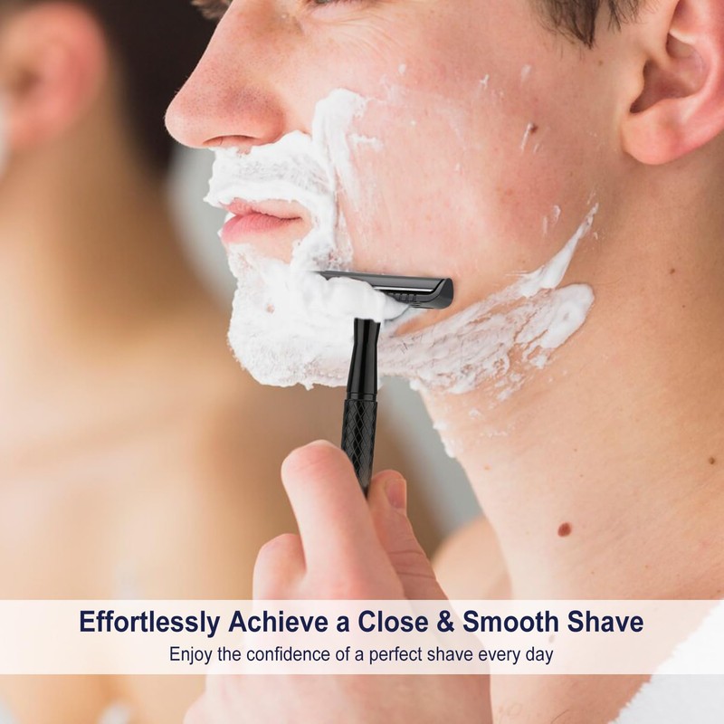 • EASY TO USE AND MAINTAIN: Safety razor handle with non-slip texture ensures a comfortable grip and precise control. The high-precision safety razor cap and closed safety razor comb plate make it easy to install the double edge razor blade without mistakes. We recommend: 1 - Rinse the safety razor after each shave and leave it in a dry environment 2 - Replace the blades in time for a satisfying shave 3 - Remove the blade If you won't use it for a long time