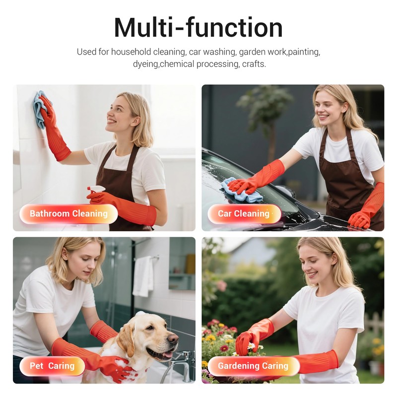 - Versatile use: Available in 3 sizes, our rubber gloves for dishwashing are designed to fit most people with different hand sizes, while also providing excellent dexterity for easy handling of dishes. These household cleaning gloves are also ideal for other tasks, such as pool and bathroom cleaning, pet cleaning, car washing, pet cleaning and more