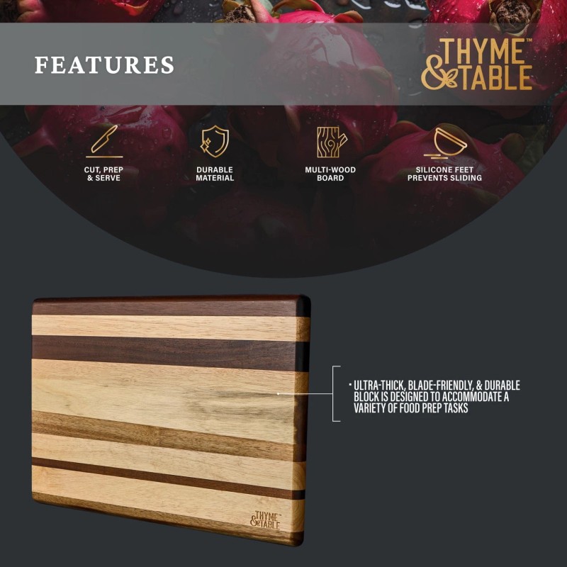 Thyme & Table 18x12 Multi-Wood Butcher Block with Non-Slip Silicone Feet