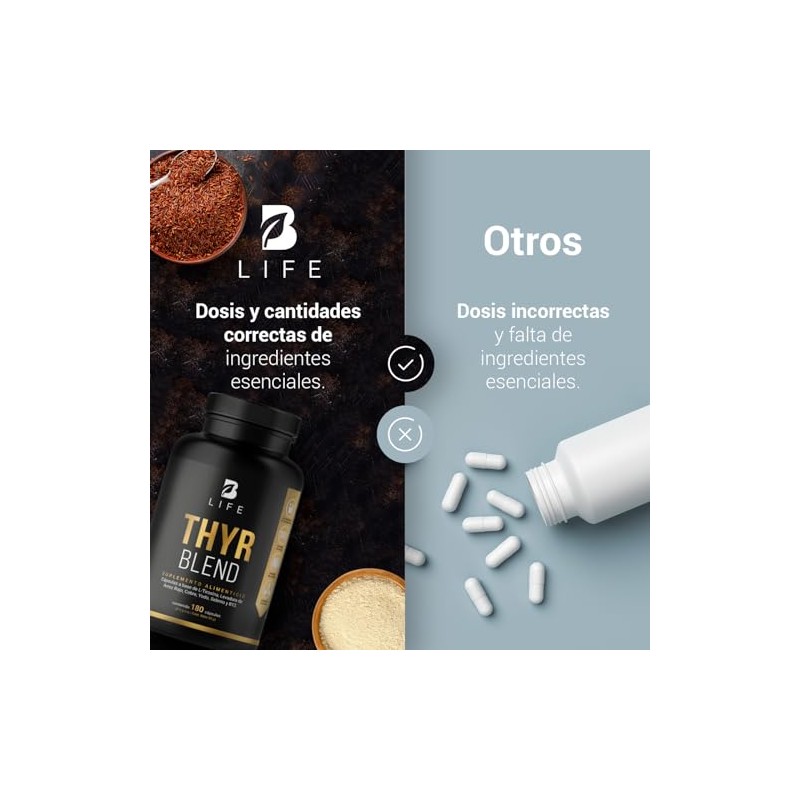 🌟 ⭐ Thyr Blend 180 Cápsulas. Ingredientes naturales: L-Tirosina, Cobre, Selenio, Yodo, Levadura de Arroz Rojo y B12. Thyro Blend B Life. ⭐ 🌟