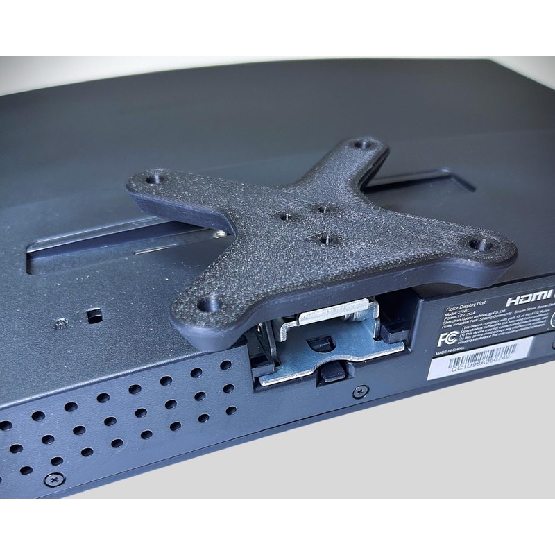 VESA Monitor Adapter compatible with Koorui 27N5C monitors, designed for a perfect fit and enhanced mounting flexibility. Ideal for improving ergonomics and freeing up desk space. Key Features: Monitor Compatibility: Specifically designed for the Koorui : 227N5C VESA Standard: Converts to VESA 75x75mm mounting standards. Easy Installation: Includes all necessary hardware for a straightforward setup. Refer to the images and video in the listing for setup assistance. Eco-Friendly Material: 3D printed from 100% recycled bioplastic (rPLA), combining strength with sustainability. VESA Mounts & Arm Compatibility: Works with VESA mounts and arms featuring 75x75mm hole patterns. Strength & Durability: Tested to support weights far in excess of the monitor's weight, ensuring robust and reliable performance. What’s Included: 1x VESA Monitor Adapter (You simply attach the metal part of the original stand to our adapter using the existing screws) Fixings Kit (screws, etc.)