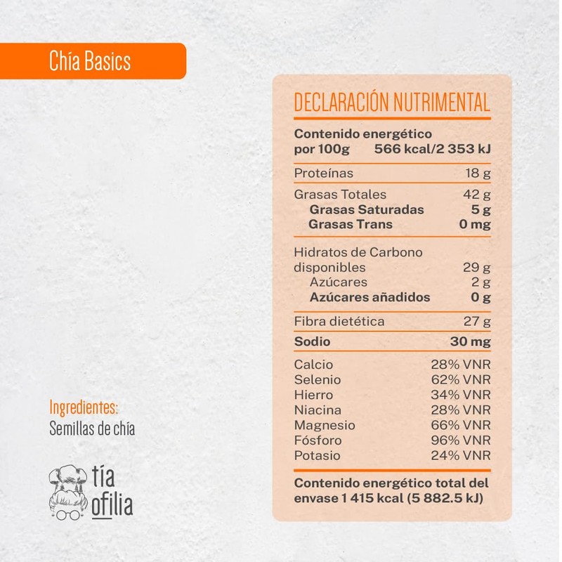 - USOS | La chía de Tía Ofilia es el complemento perfecto para tus desayunos y snacks. Puedes ponerla en tus cereales, fruta con yogur, bowls y smoothies. También puedes agregarla a tus jugos, limonadas o aguas frescas. Combínala con avena en un delicioso pudín remojándola y dejándola reposar en leche vegetal. Úsala como sustituto de huevo en algunas recetas saludables.