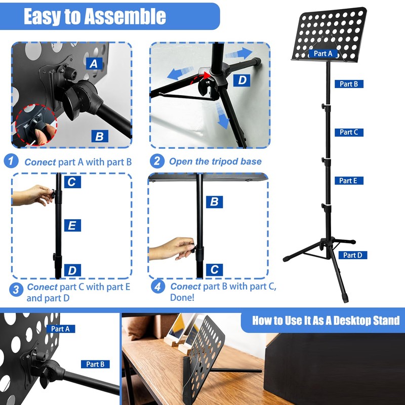 - 【Portable and Lightweight】The portable music stand come with a carrying bag for easy carrying and storage, and the lightweight and easy detachable design allows you to install quickly and carry it around