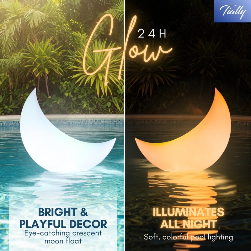 TIALLY Floating Pool Lights for Swimming Pool Solar Powered - 24" Crescent Moon - LED Lights for Pool Weddings - Pool Party Decor for Outdoor (2 Pack)