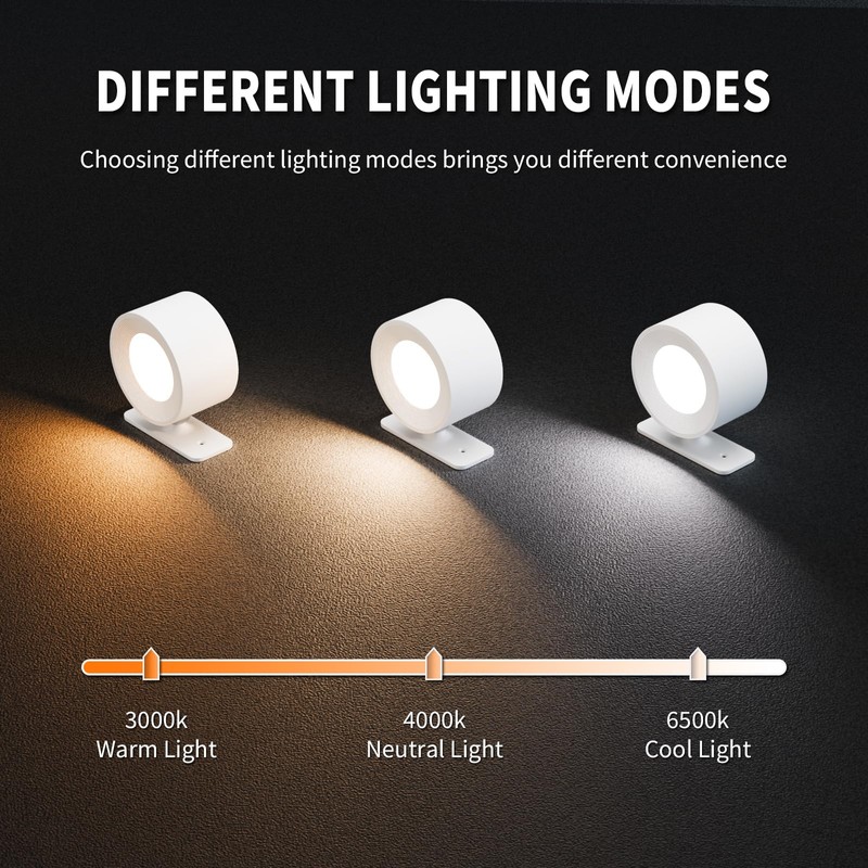 • 【PRECISE CONTROL, INFINITELY DIMMABL WALL LIGHTS】These wireless wall sconces are equipped with 3 color temperature options (3000K warm white, 4000K natural white, 6500K white light) and 3 brightness levels (25%, 50%, 100%) by simply touching to personalize your lighting modes in different scenarios.