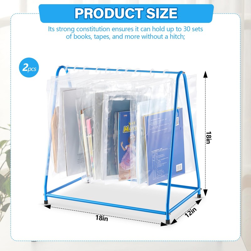 Tiangrid 2 Pcs Book Rack Metal Read Along Totes Rack 12 x 18 x 18 Inch Hanging Book Rack with Non Slip Rubber Floor Mat for Classroom Organization Teacher Supplies(Storage Bag not Included)