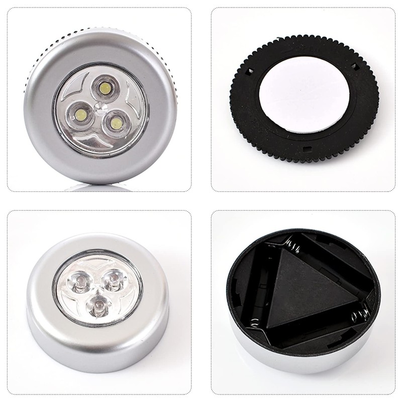 • [Easy to use]: The back of the button light has a self-adhesive sticker, which can be attached to any wall, such as wood, plastic, metal, glass and other flat places; when in use, press the middle part of the three light beads lamp, and repeat the operation again to turn it off. Note: It is powered by 3 No. 7 batteries (not included).