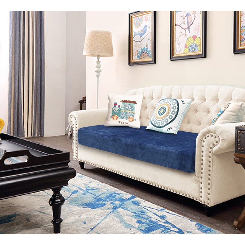TIANSHU Velvet Stretch Cushion Cover, Sofa Cushion Protective Cover, Furniture Protection, Sofa Seat Cover for Couch, 1-Piece Velvet Cushion Covers for 3-Seater (3-Seater, Navy Blue)