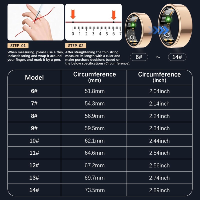 - Intelligent Sleep Tracker: Equipped with a high-end chip, this sleep tracking ring can automatically monitor your sleep while you're sleeping at night. Monitor your falling asleep, waking up time, sleep quality (deep/light sleep) through graphs. You can view daily, weekly and monthly sleep data in the App, It helps you better understand your sleep and develop healthier sleep habits. The fitness rings for men is so lightweight and comfortable that you won't even notice it while wearing it to bed.