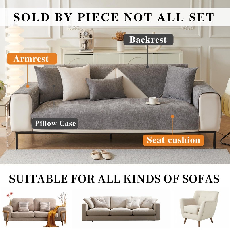 tianxinbaobei - Funda de sofá de felpa lavable, antideslizantes, fundas de sofá que aceptan mascotas, fundas de sofá de felpilla suave para sala de estar (gris oscuro/28 x 28 pulgadas/funda de