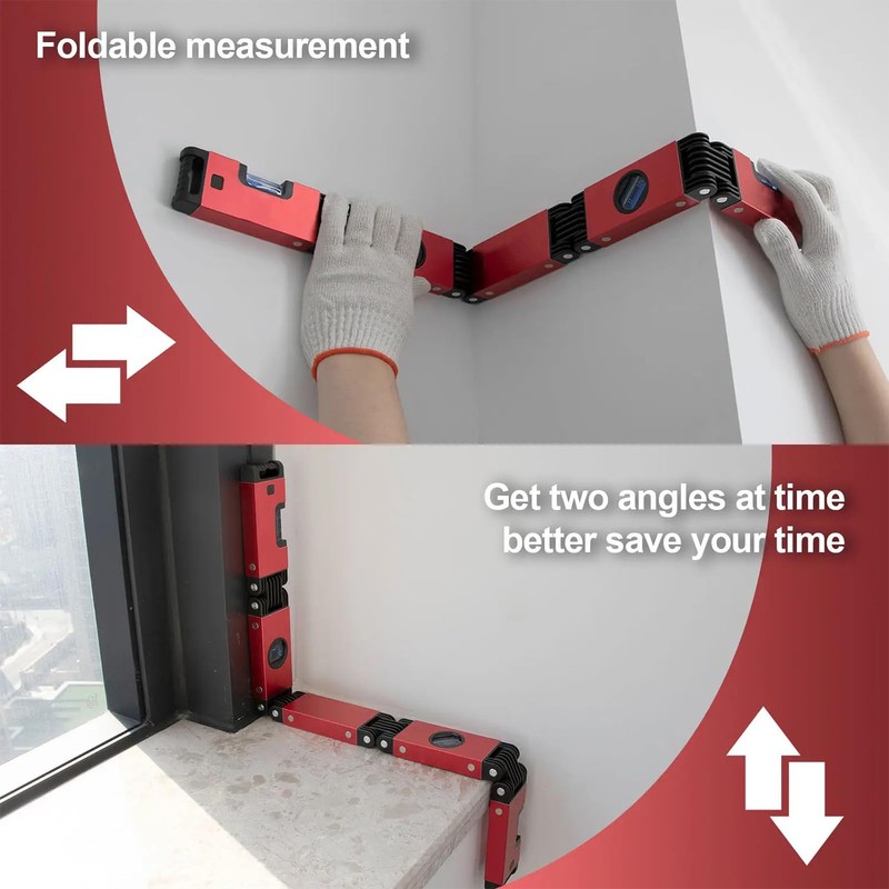 An excellent construction tool, Foldable level with its hinged design allows you to fold it to any angle to bypass obstacles such as pipes, stairs and corners. You can mark both walls at the same time when folded in the middle. Fast and accurate level measurement can save you valuable time.