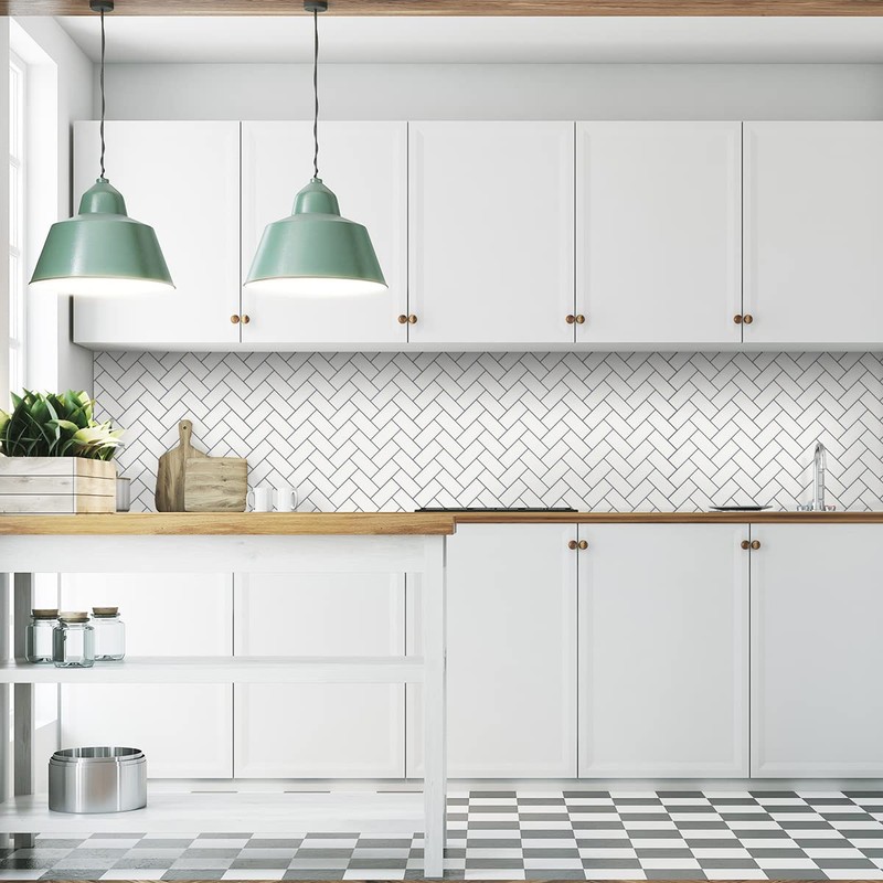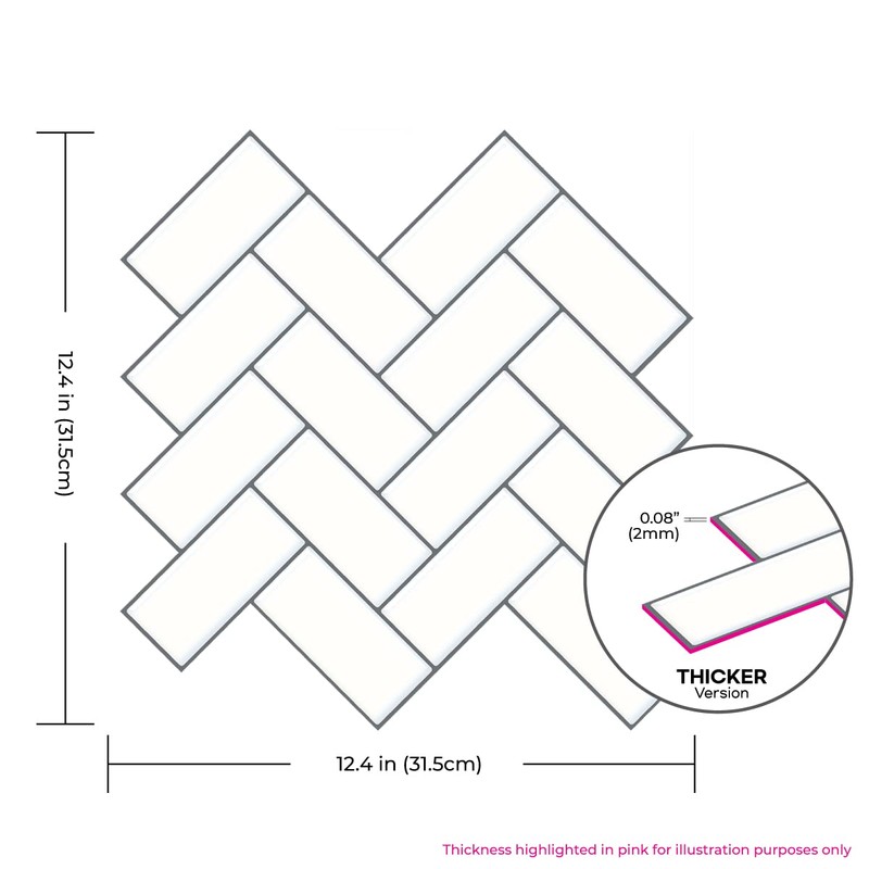 Tic Tac Tiles 10-Sheet Peel and Stick Tiles in Thicker Herringbone Designs (Mono White)