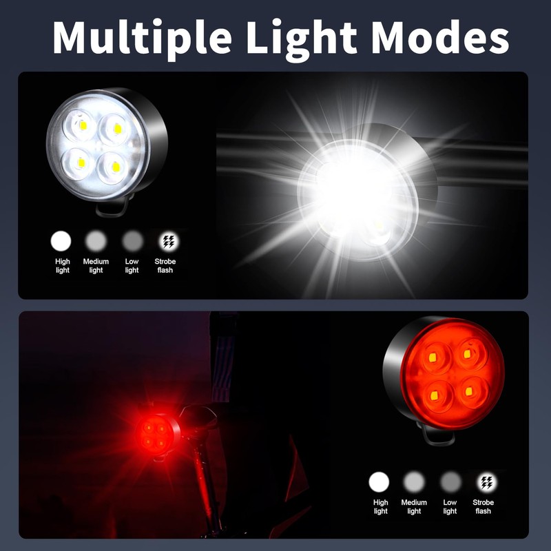 - Fácil Instalación y Extracción: luz LED biciclet se engancha fácilmente y se mantiene en su lugar. Las Luz Delantera y Luz Trasera Recargable por USB no requieren herramientas, son fáciles de colocar y quitar, ya sea una bicicleta para niños, una bicicleta de carretera de montaña o una motocicleta.