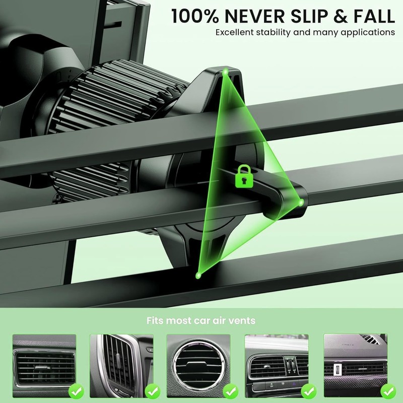 - Rock-Solid Vent Grip: Engineered with a robust clamping jaw that attaches securely to virtually any car air vent fin. It holds tight through daily commutes and ensures your device stays put on unpredictable road conditions.