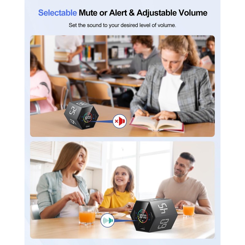 - Mute and adjustable beep. Simply turn the productivity timer over to stop the countdown. To continue the countdown, simply turn it over again. Adjust the volume as you like and choose between mute and adjustable beep. More options, more comfort.