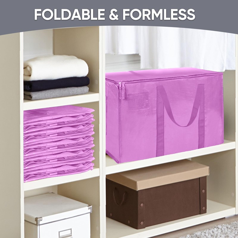 TICONN 2 Pack Extra Large Moving Bags with Zippers & Carrying Handles, Heavy-Duty Storage Tote Moving Boxes for Space Saving (2 Pack, Pink)