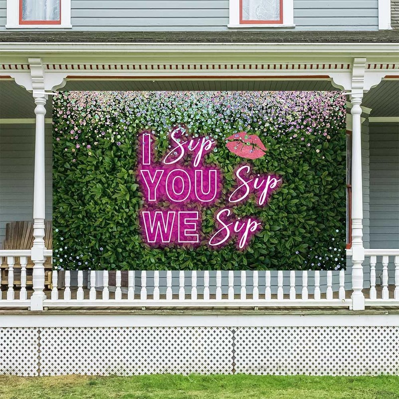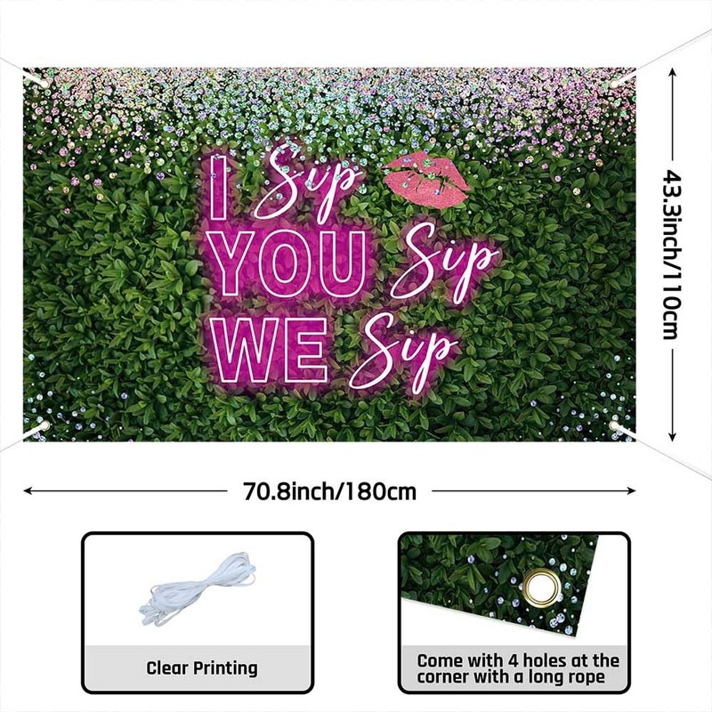 Ticuenicoa Galentine's Day Banner - I Sip You Sip We Sip Romantic 70.8x43.3 Inches Backdrop for Party Decor and Photography, Perfect for Ladies' Galentines Day Celebrations