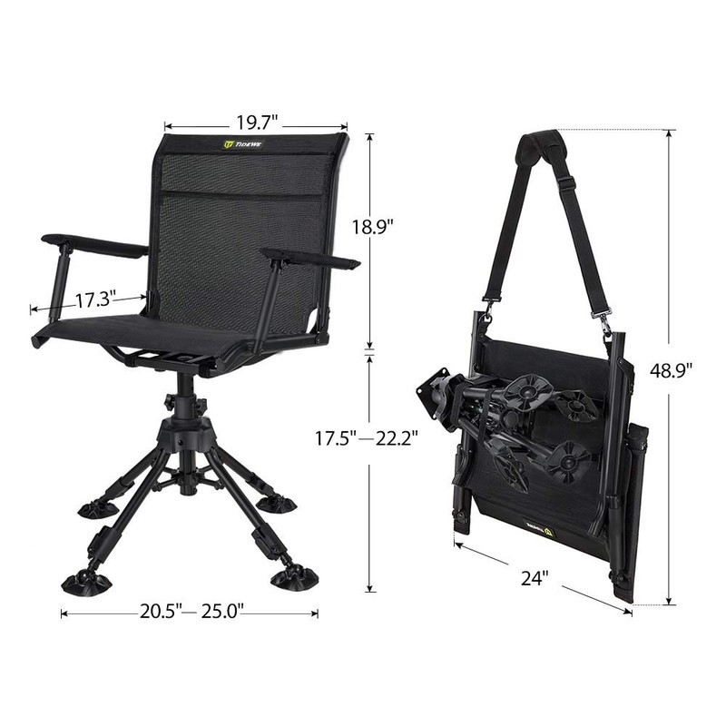 • 【Comfortable】The seat height can be adjusted from 17.5inches to 22.2inches. The silent swivel allows you to turn in any direction quietly inside of your blind. Breathable TechMesh material, as well as the widened backrest keeps you cool and comfortable while hunting.