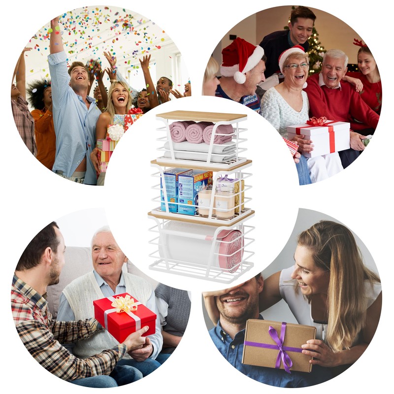 TIDIIABODE 3 Pack Stackable Laundry Room Organization,Trash Bag Dispenser Under Sink, Countertop Organizer, Kitchen Sink Accessories,White