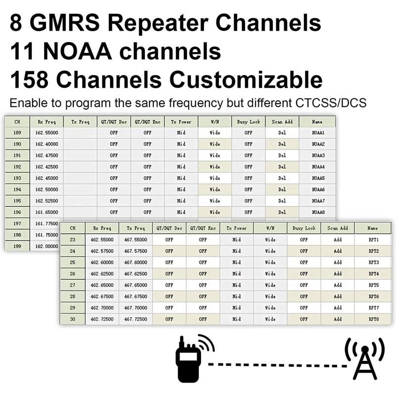 H8 are portable ham radios with 11 default NOAA Channels. You can bind NOAA Weather Mode on the side keys to get real-time weather information updates and always one step ahead of the bad weather.