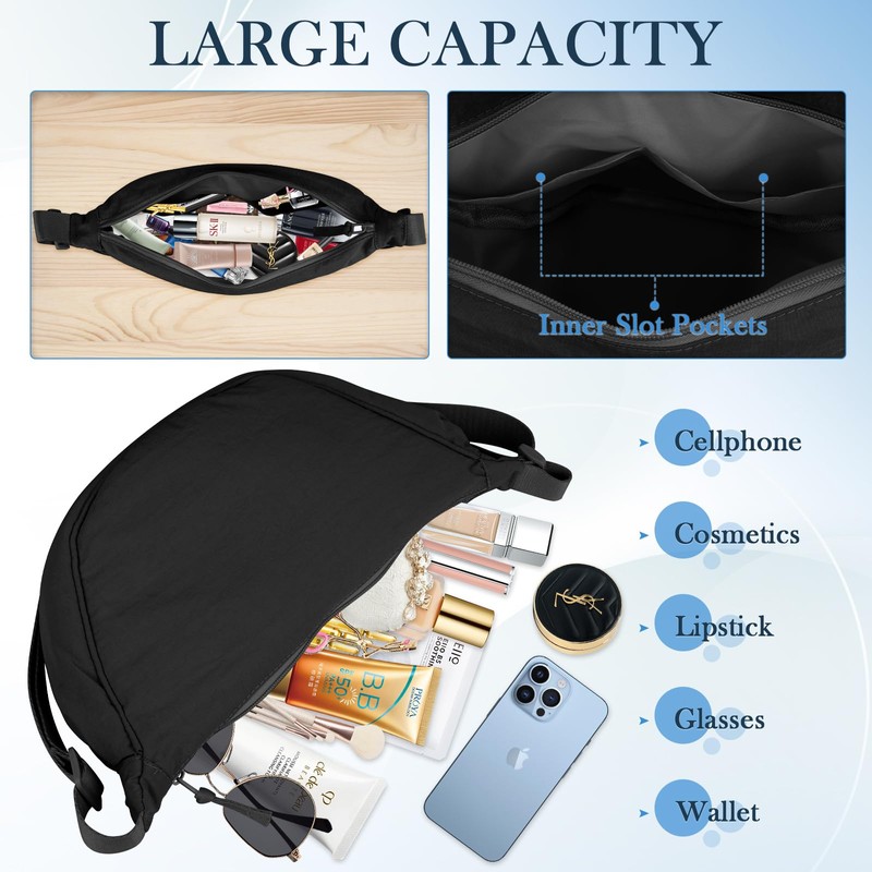 TIECHI Crescent Cross Body Bag Women, Small Bags for Women with Adjustable Strap, Nylon Handbags & Shoulder Bags Chest Bag for Travel Daily Use, Black