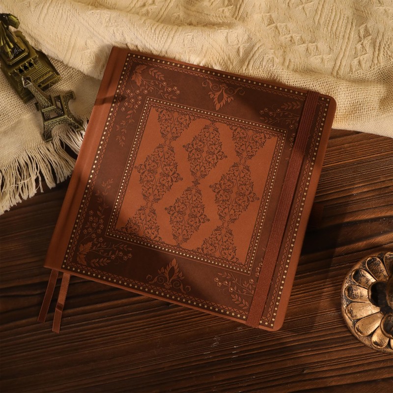 - HARDCOVER DOT JOURNAL Our dotted hardcover journal is made of PU leather, which is comfortable to touch and durable. The laser embossing and gold plating give the cover a relief-like three-dimensional effect. In addition, it offers a variety of artistic patterns for those who strive for the ultimate writing aesthetic.
