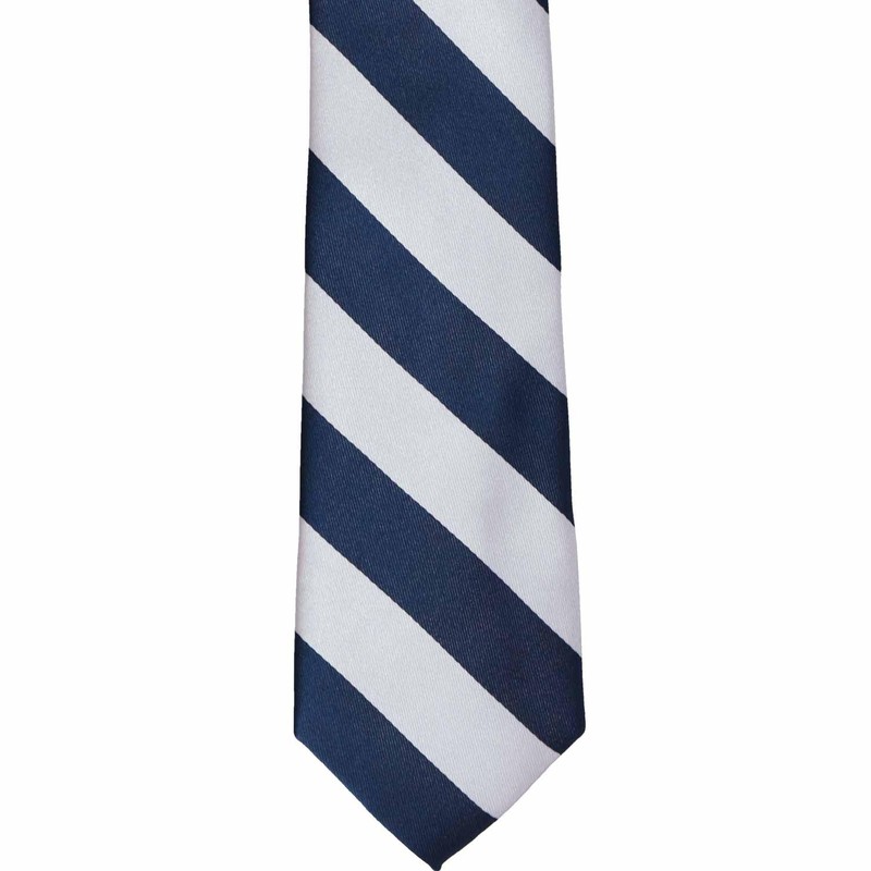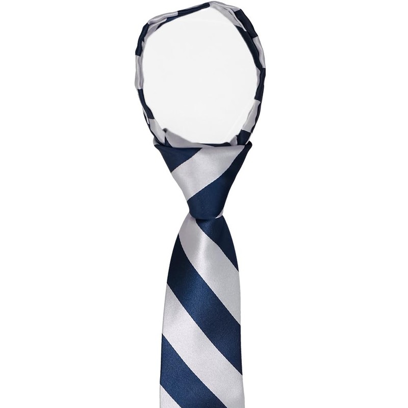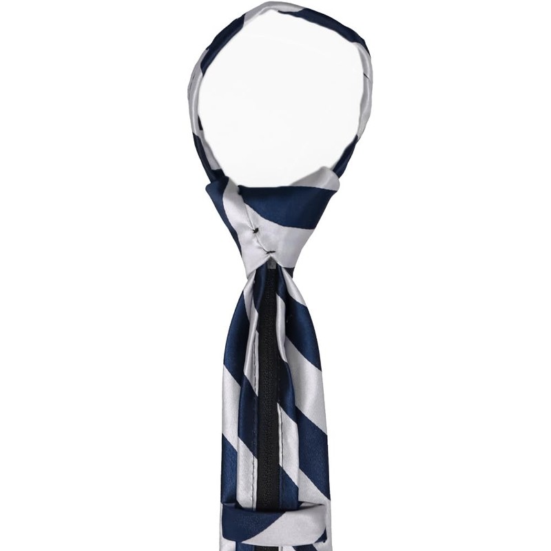 tiemart Boys' Zipper Ties (14 inch, Navy Blue and Silver Striped)