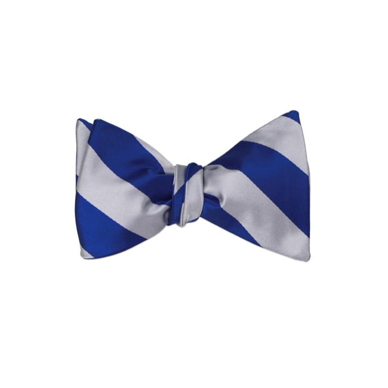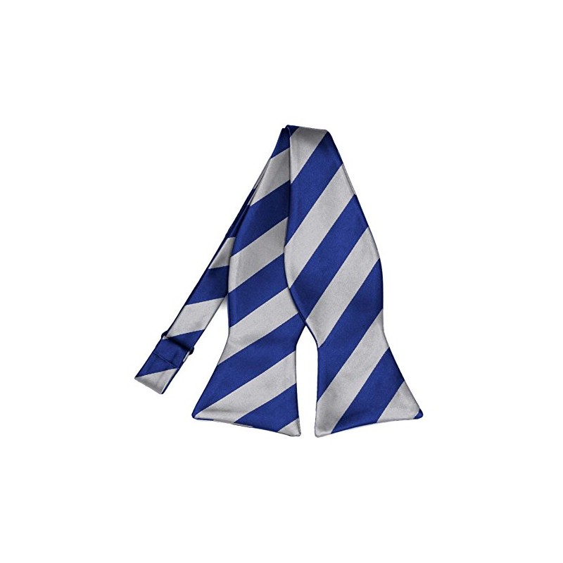 tiemart Striped Self-Tie Bow Tie (Royal Blue and SIlver)