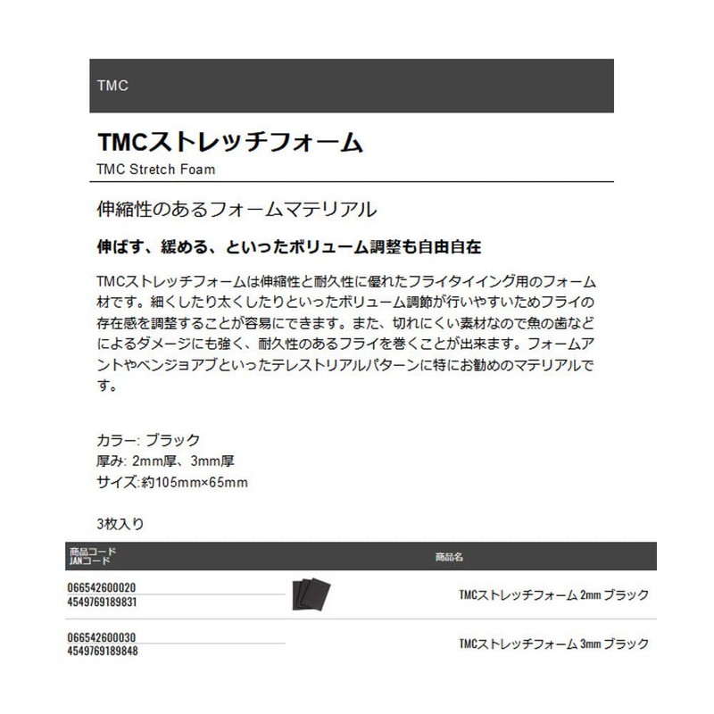 TIEMCO TMC Stretch Foam, 0.1 inch (3 mm), Black