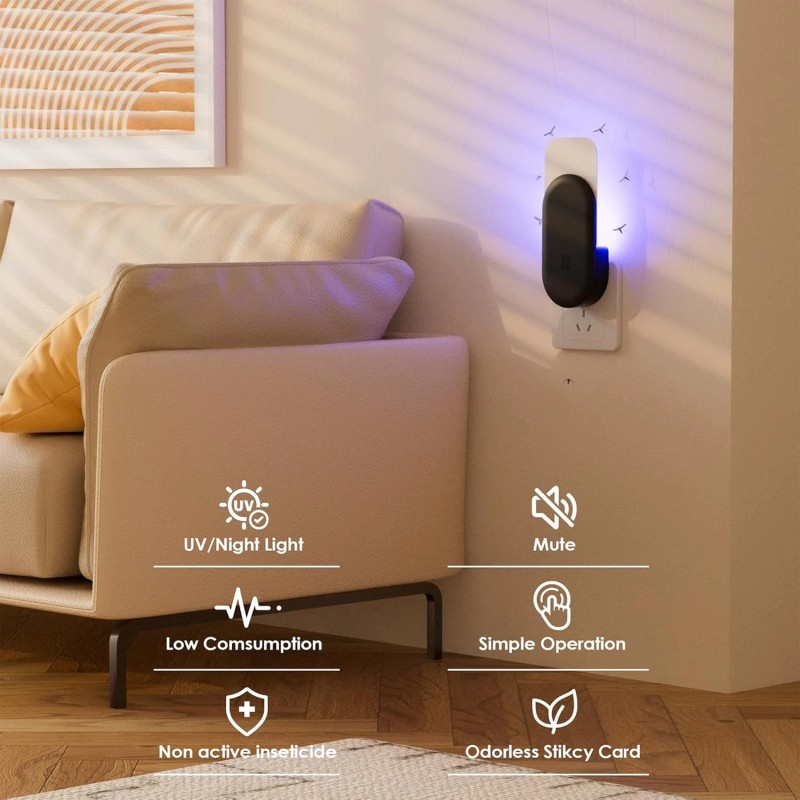 - Smart Night Light Mode: With two LED beads, this Flying Insect Trap offers smart and night light modes for versatile use. The device automatically detects ambient light levels in smart mode, while the night mode provides continuous illumination. Ideal for keeping your room insect-free and well-lit during nighttime hours.