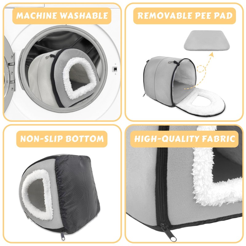 - MACHINE WASHABLE - These machine washable beds, hideouts or tunnels are made of premium fabric with a removable pee pad so they are easy to clean. And the PP cotton padding inside ensures the house stays upright even after multiple washes.