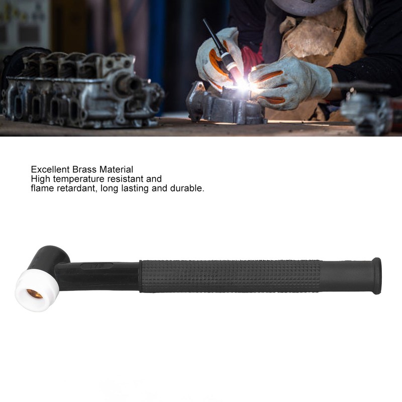 1、Easy To Use: This TIG welding torch head is lightweight, allows for one handed operation, reduces operator fatigue, and is easy to attach and replace. 2、Excellent Brass Material: This welding machine torch head is made of excellent brass material, high temperature resistant and flame retardant, long lasting and durable. 3、Knurled Handle: This flexible TIG welding torch head features a knurled handle which enhances grip, and is easy to operate and saves energy. 4、Bendable Design: This pliable tig welding tip features a bendable design that allows you to weld at multiple angles to minimize work and make it easier to access difficult weld positions. 5、8.5mm Air Pipe Connection: This bendable tig welding tip has an 8.5mm (0.335 inch) inner diameter air pipe connection in the handle with air cooling to greatly improve work efficiency.