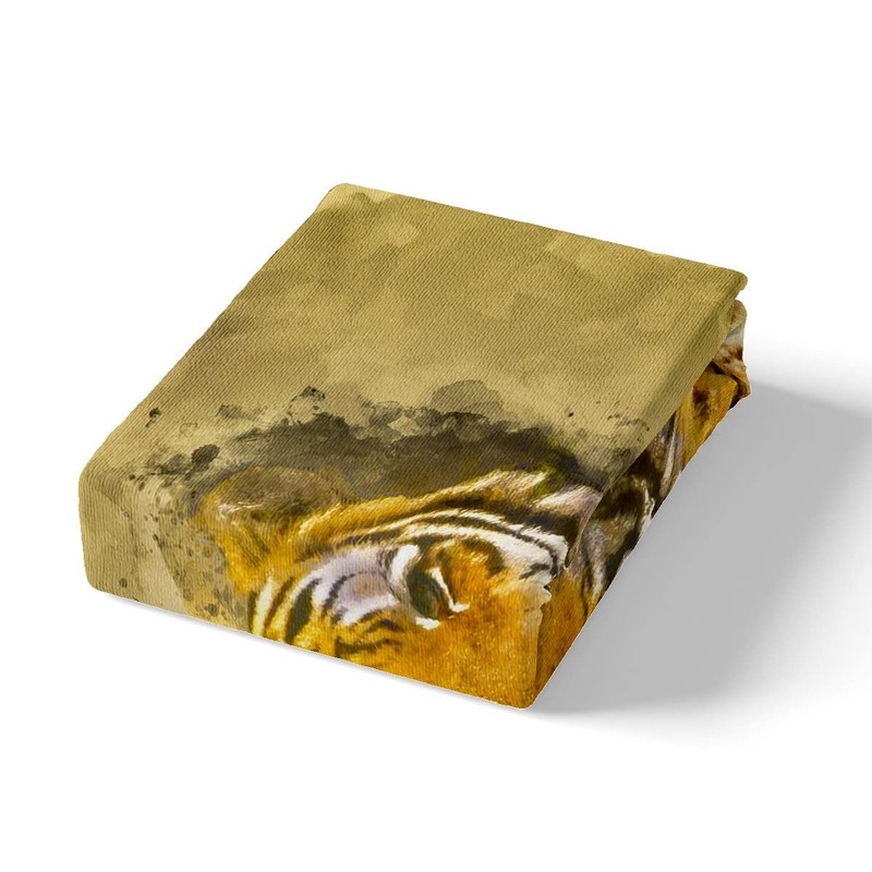 Tiger Bedding Sheet Wild Animal Fitted Sheet for Kids Boys Girls Retro Style Yellow Tiger Fitted Sheet Breathable Wildlife Single Size