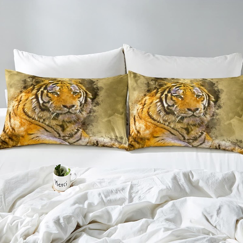 Tiger Bedding Sheet Wild Animal Fitted Sheet for Kids Boys Girls Retro Style ...