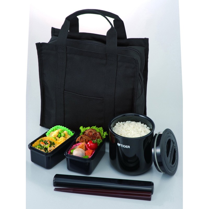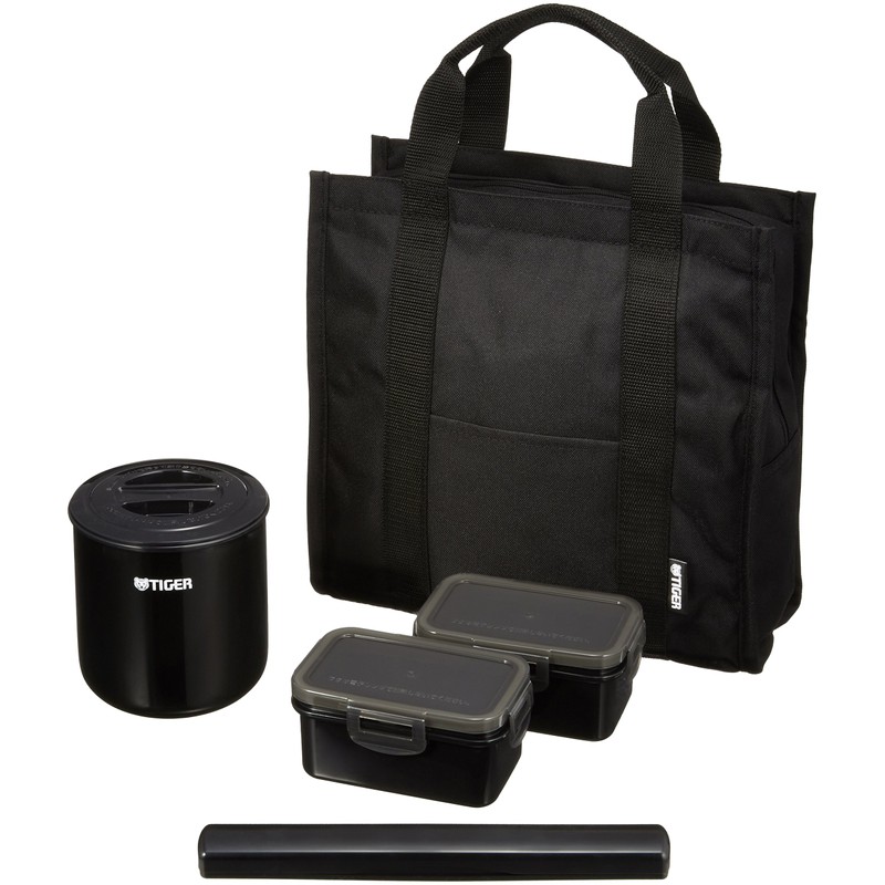 Tiger LWY-T036-K Thermos Bottle, Insulated Lunch Box, Stainless Steel, Lunch Jar, Approx. 1.8 Cups, Tote Bag Included, Black
