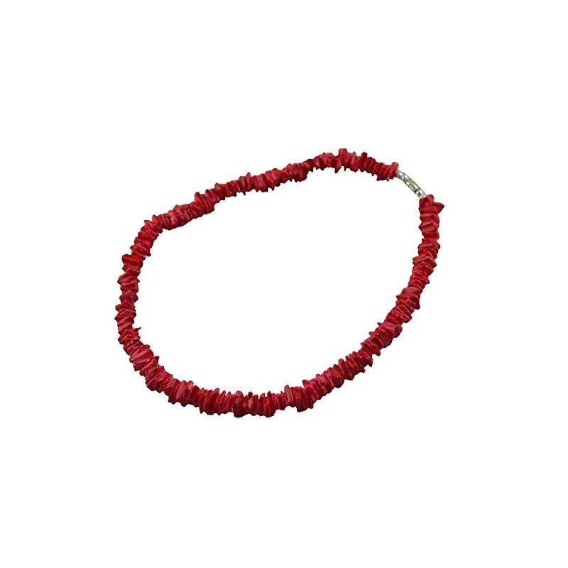 Tiger Smile Real Chips Puka Shell Necklace 18" Red