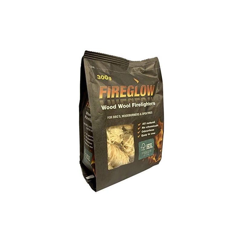 Tiger Tim Fireglow 8 x 300g Wood Wool Firelighters Natural Eco Odourless No Chemicals Long Burn Instant Fire Starters for Wood Burners Barbecues Stoves Grills Campfires