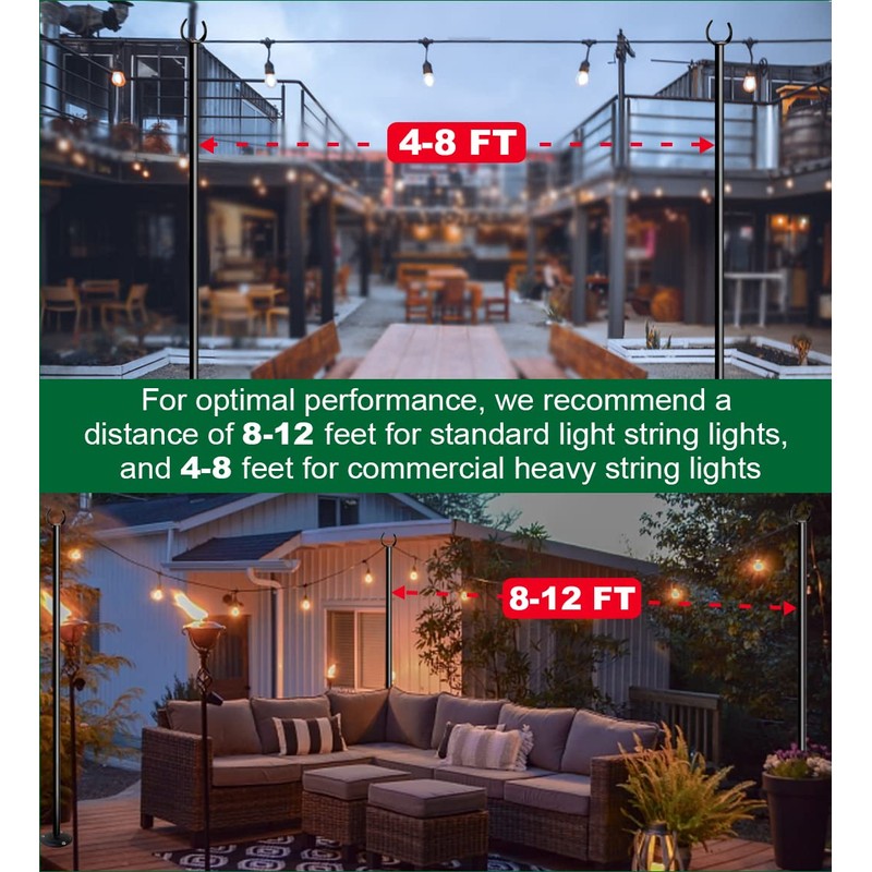 - Usage suggestions : Tigerden unique light pole holder is built to last, with a sturdy and stable design that has been tested for durability. It won't easily bend or deform, ensuring long-lasting use. For optimal performance, we recommend a distance of 8-12 feet for standard light string lights, and 4-8 feet for commercial heavy string lights.