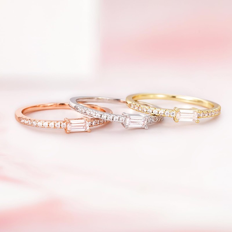 - Delicate Design: Classic and sleek engagement anniversary rings. The center stone is set with baguette cubic zirconia, a half circle of sparkling small cubic zirconia to complement the center zirconia stone