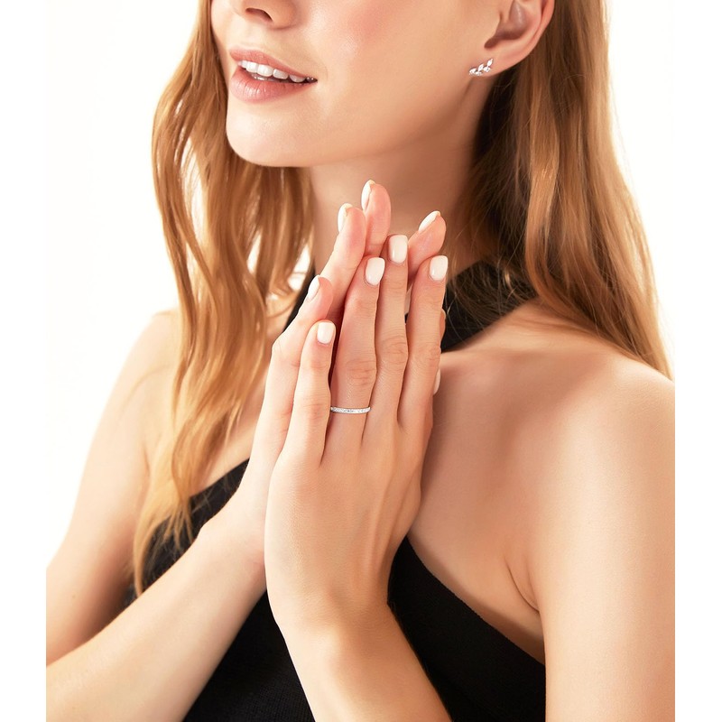 TIGRADE 2mm Women Titanium Eternity Ring Cubic Zirconia Anniversary Wedding Engagement Band Size 3-13.5 (Silver, 7)
