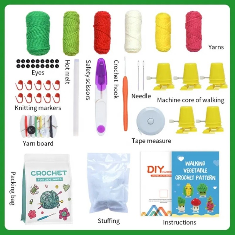 TIKA 5‑Pcs DIY Puff Bubble Vegetable Crochet Kit – Beginner Knitting w Video Tutorial