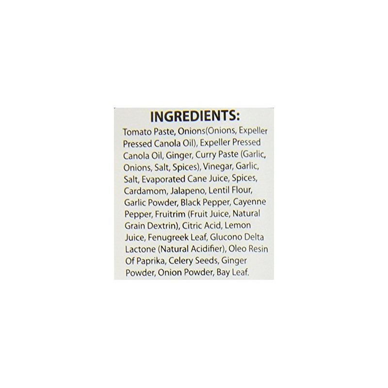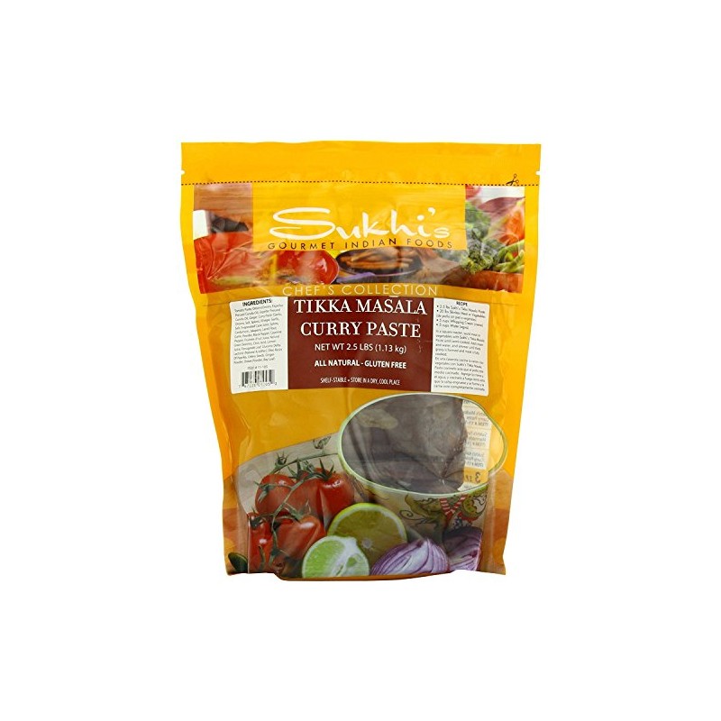 Sukhi's Gourmet Indian Foods Tikka Masala curry paste bulk. Ingredients: TOMATO PASTE, ONIONS, EXPELLER PRESSED CANOLA OIL, GLYCERIN, CARAMELIZED ONION (ONION, EXPELLER PRESSED CANOLA OIL), SPICES, CURRY PASTE (LEMONGRASS, GARLIC, SHALLOT, SALT, SPICES, KAFFIR LIME PEEL, TURMERIC), WATER, VINEGAR, SALT, LENTIL FLOUR, GINGER, GARLIC POWDER, EVAPORATED CANE SYRUP, CITRIC ACID (FOR FLAVOR), JALAPENO, GLUCONO DELTA LACTONE, NATURAL FLAVOR, LEMON JUICE, ONION POWDER, BAY LEAF.