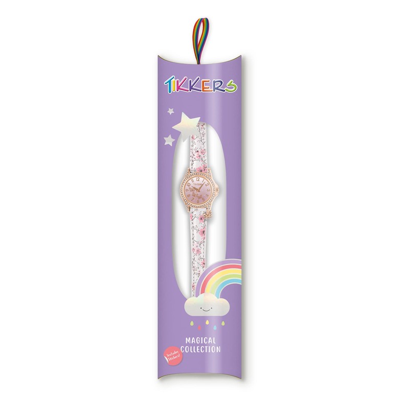 Tikkers Rose Gold Case Flower Printed Butterfly Charm Watch - NTK0029