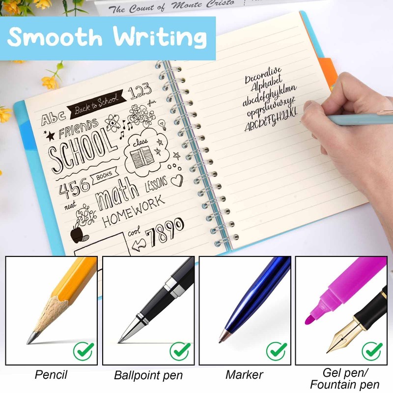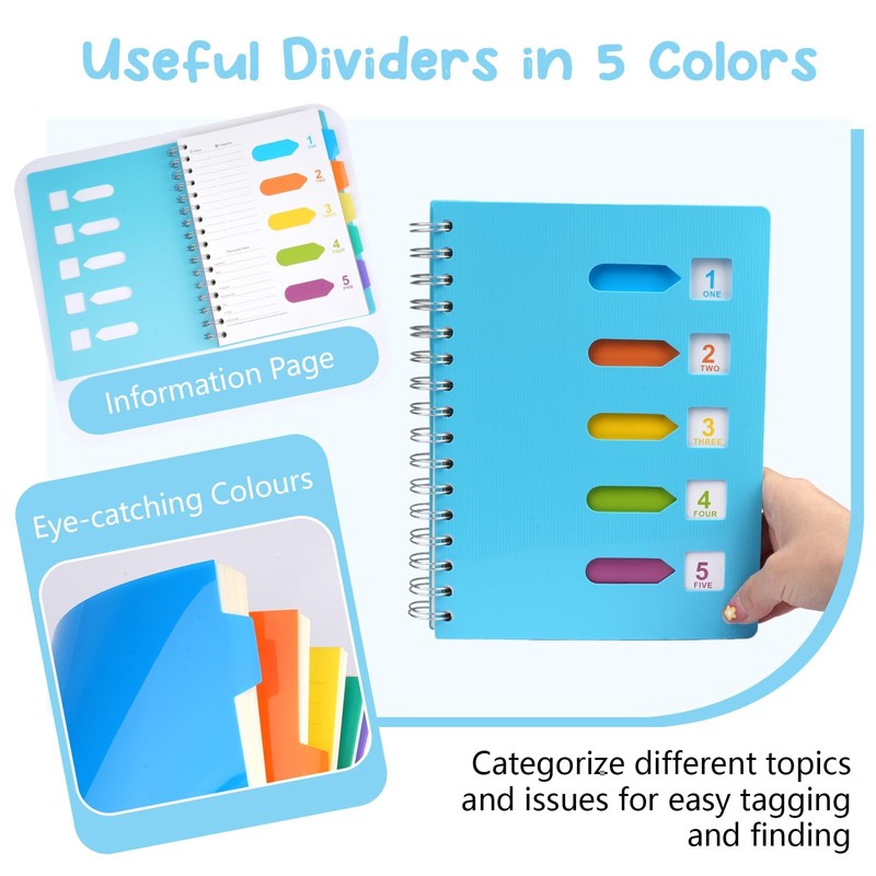 - 5 DIFFERENT COLORED DIVIDERS: A5 notebook has 5 different colored dividers, which are convenient for classifying and managing different topics or tasks, making your records more efficient and orderly