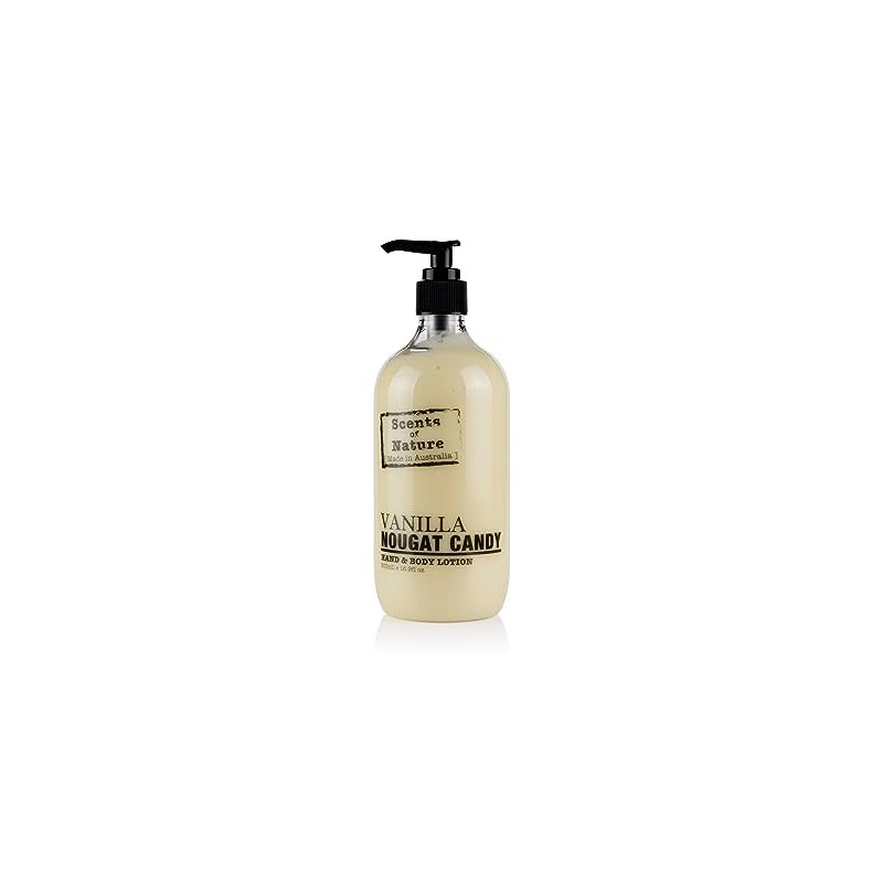 - Smooth and creamy textured hand and body lotion in vanilla nougat candy scent
